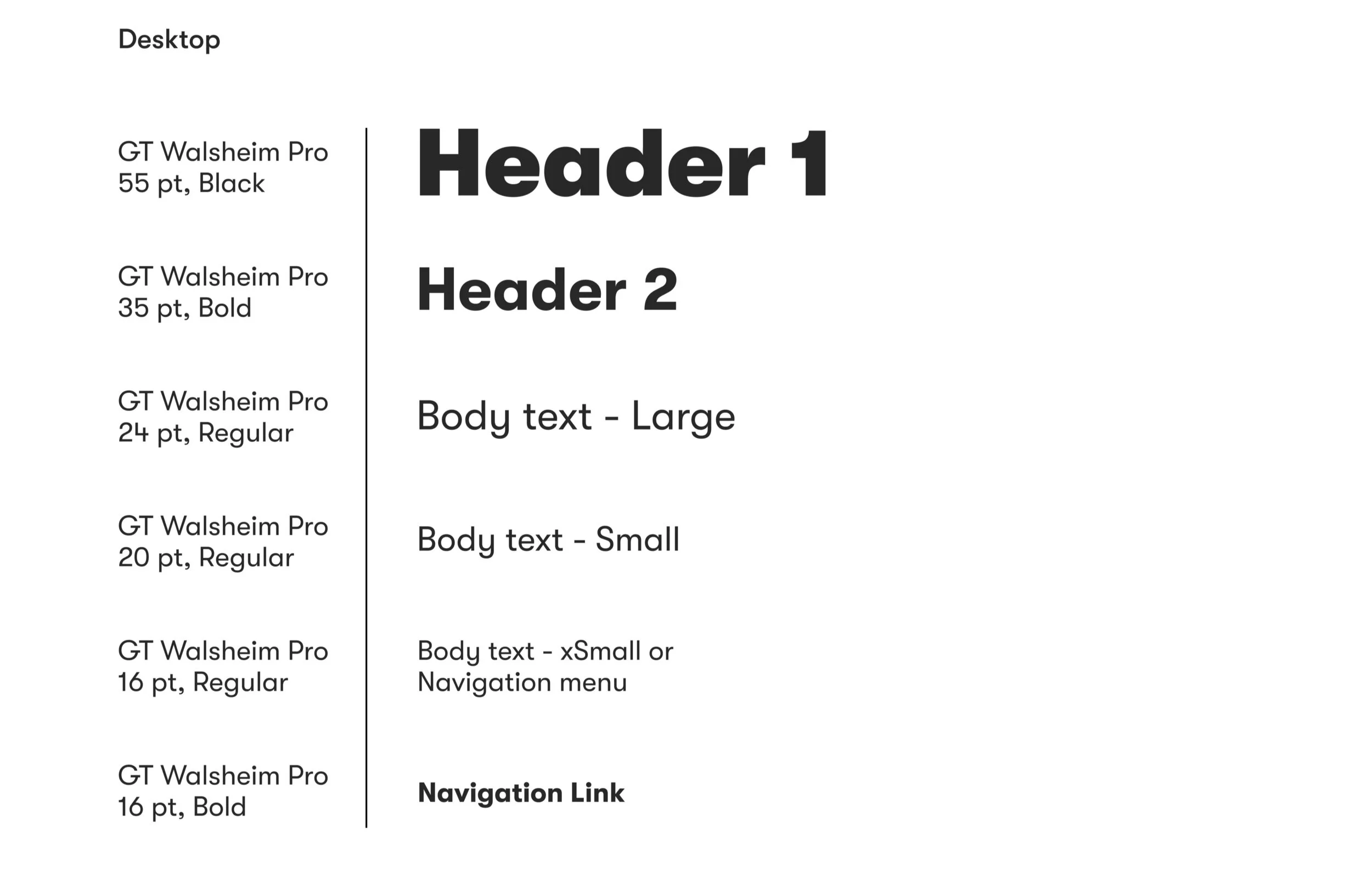 The GT Walsheim Pro is a geometric sans-serif typeface that is friendly, yet balanced. The circular counters and bowls in the letters evoke feelings of warmth and play. However, the straight and precise terminals provide a structured balance.